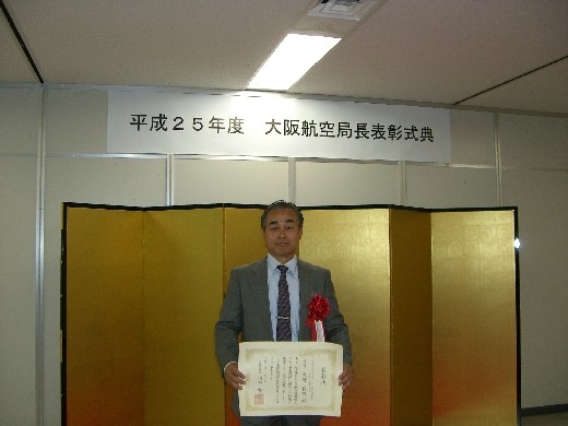 大阪にて行われた平成25年度大阪航空局長表彰式典に於いて弊社の矢野匡修整備士が長年に渡り、機体の耐空性の維持、防災活動並びにヘリコプターの安全運航に努めた功績が称えられ、大阪航空局長より表彰されました。