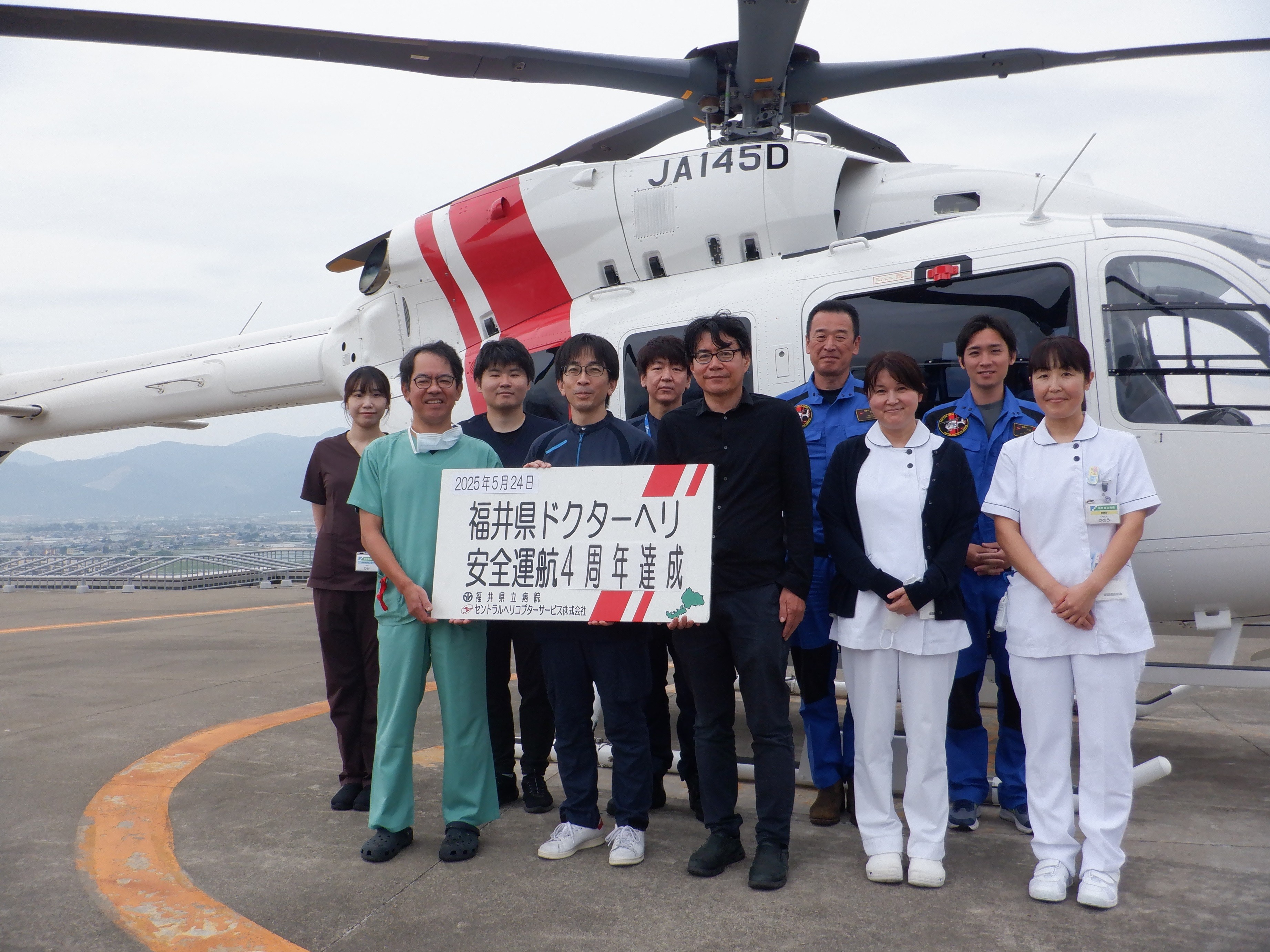 2025年5月24日、ドクターヘリ拠点の1つである福井県立病院様において、運航開始から4年が経過しました。