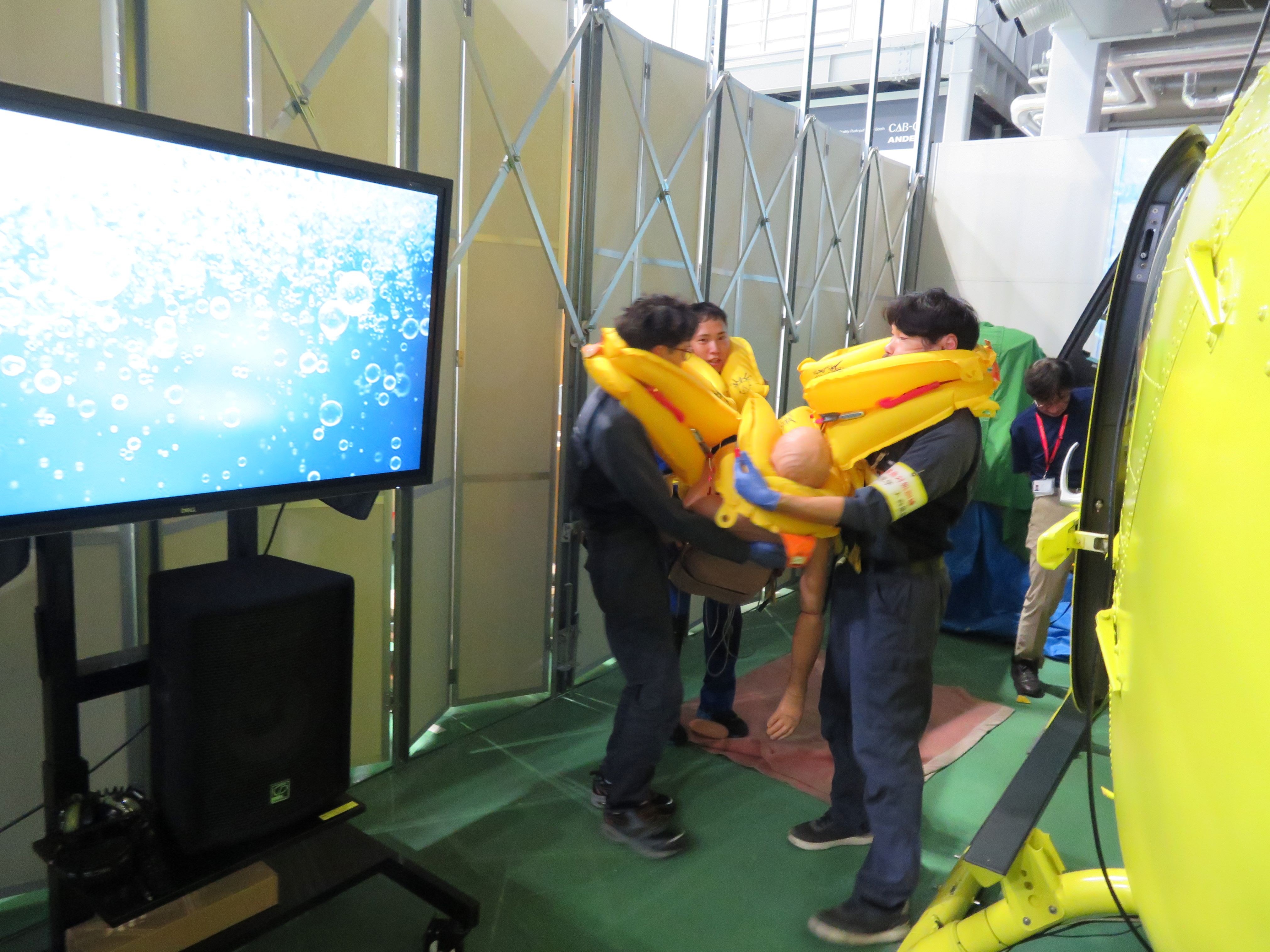 ドクターヘリで患者を搬送中、機体が洋上に不時着水した想定で訓練を実施しました。