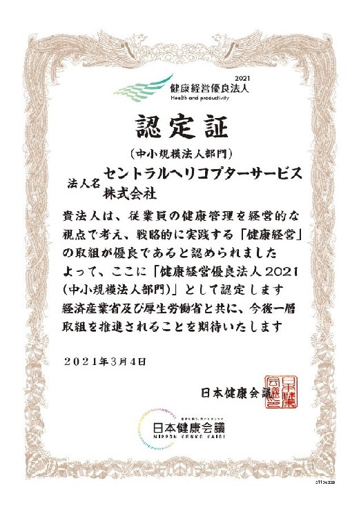 「健康経営優良法人2021(中小規模法人部門)」に認定されました。